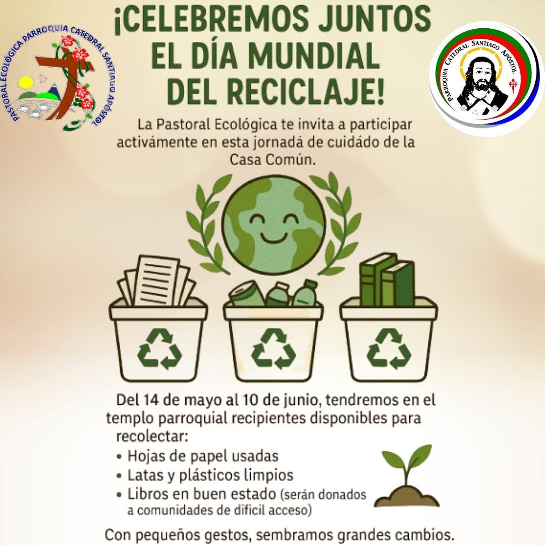 La Pastoral Ecológica de la parroquia Catedral Santiago Apóstol ha iniciado una campaña de recolección de materiales reciclables y libros en buen estado, como parte de su compromiso con el cuidado de la Casa Común y el apoyo a comunidades necesitadas. Desde este 14 de mayo hasta el 10 de junio, se colocarán recipientes...