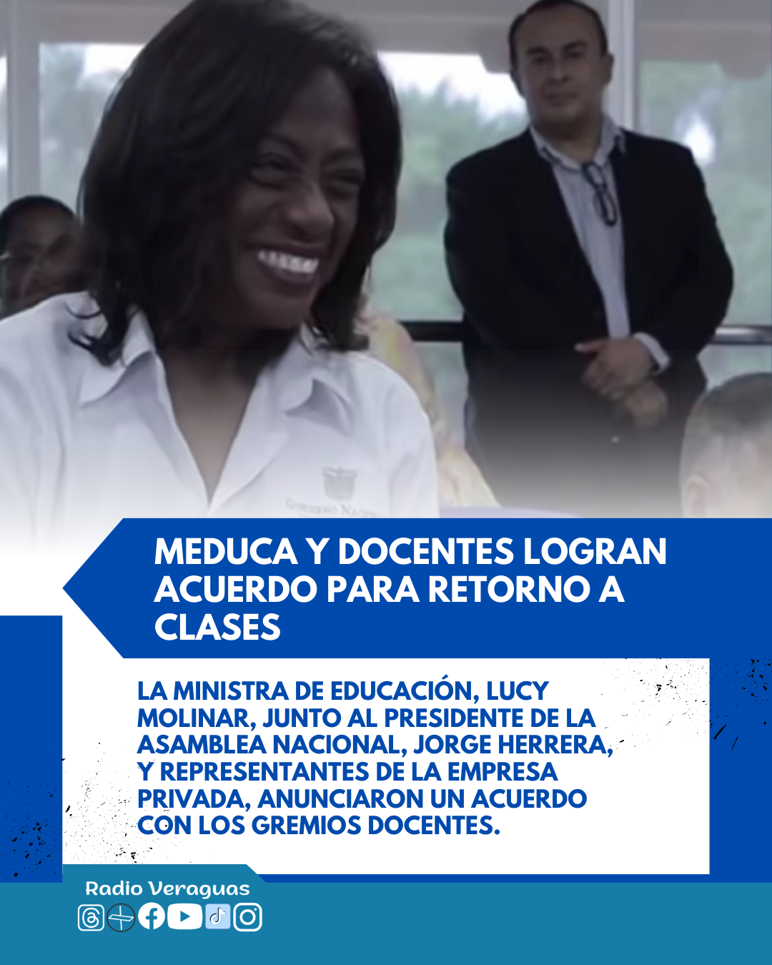 La ministra de Educación, Lucy Molinar, junto al presidente de la Asamblea Nacional, Jorge Herrera, y representantes de la empresa privada, anunciaron un acuerdo con los gremios docentes, el cual establece una declaración de principios que prioriza el interés de los estudiantes. Las partes coinciden en la necesidad urgente de retomar las clases cuanto...